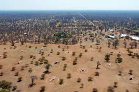Before the auction each year we prepare the area next to the auction facility for helicopters (S 24°28.774’E 027°15.201’). A number of helicopter landing sites are selected and white markings are painted onto the grass. It is best to approach from the south of Amsterdam, keeping well clear of the auction pens. We have a dedicated team waiting for the arrival of helicopters and they will collect the pilot and passengers soon after you have landed.
